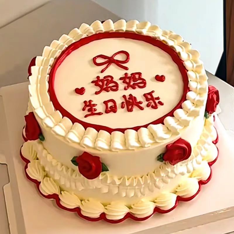 复古款妈妈生日快乐--时令水果夹心奶油蛋糕