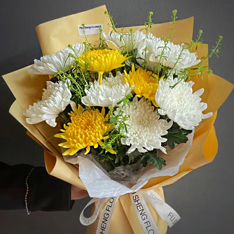 深深悼念-8朵白菊3朵黄菊,配叶间插