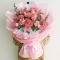 温暖生活-33朵粉色康乃馨、粉玫瑰混搭,搭配尤加利叶、栀子叶装饰