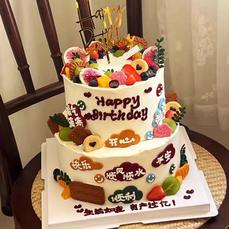 顺风顺水双层加高款水果奶油蛋糕--时令水果装饰
