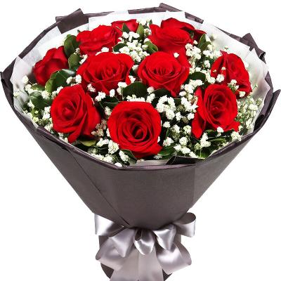 钟情一生-11朵红玫瑰,满天星、栀子叶丰满搭配