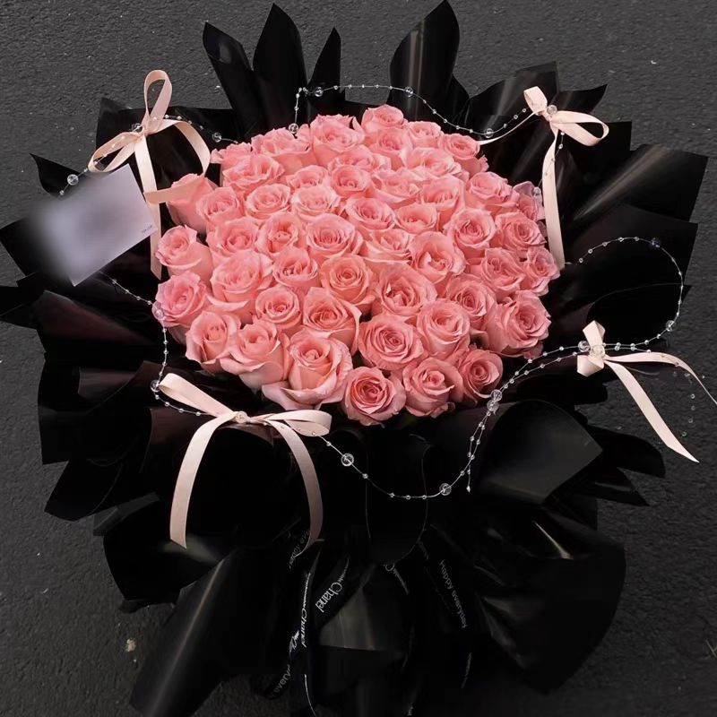 我爱你 温柔岁月款- 粉玫瑰52枝、蝴蝶结珍珠装饰