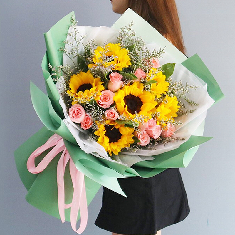 梦想启程-11支戴安娜,6朵向日葵,搭配情人草间插
