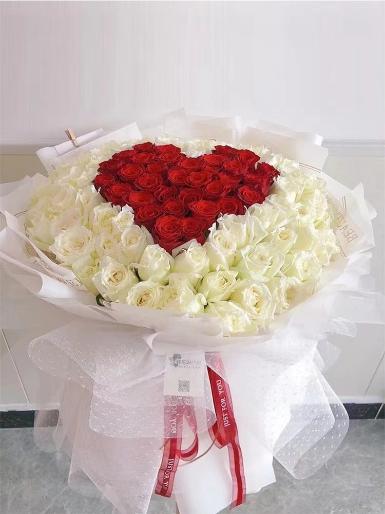 挚爱---红玫瑰白玫瑰199支白纱装饰