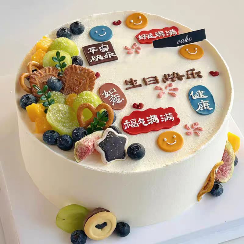 男士生日蛋糕- 圆形鲜奶蛋糕,水果夹心,奶油写字 订蛋糕生日蛋糕预定同城蛋糕店配送