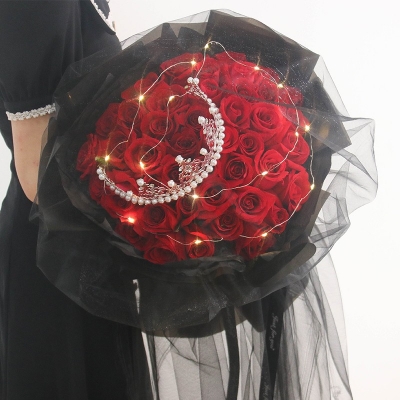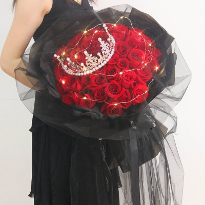 幸福女王-33朵红玫瑰,彩灯,皇冠