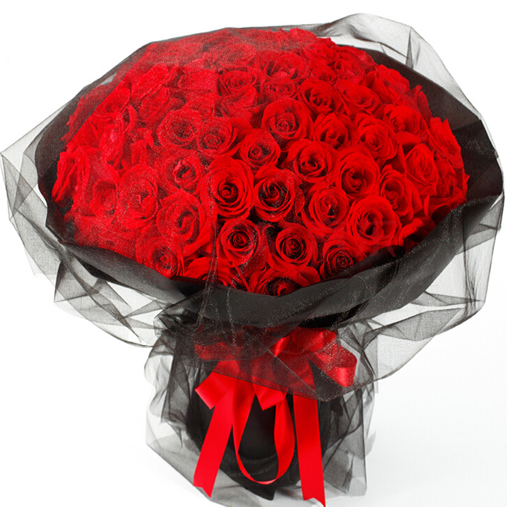 爱情宣言-99枝精品红玫瑰黑色纱网高档包装纸