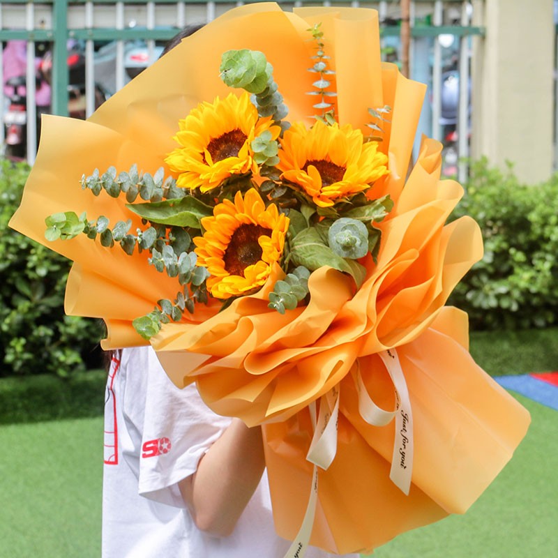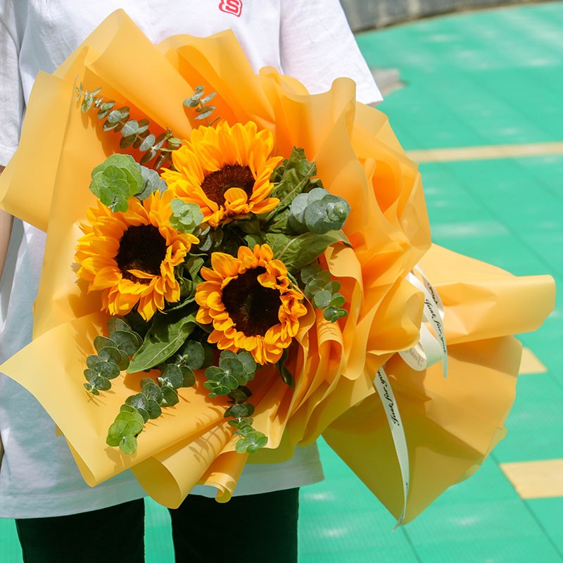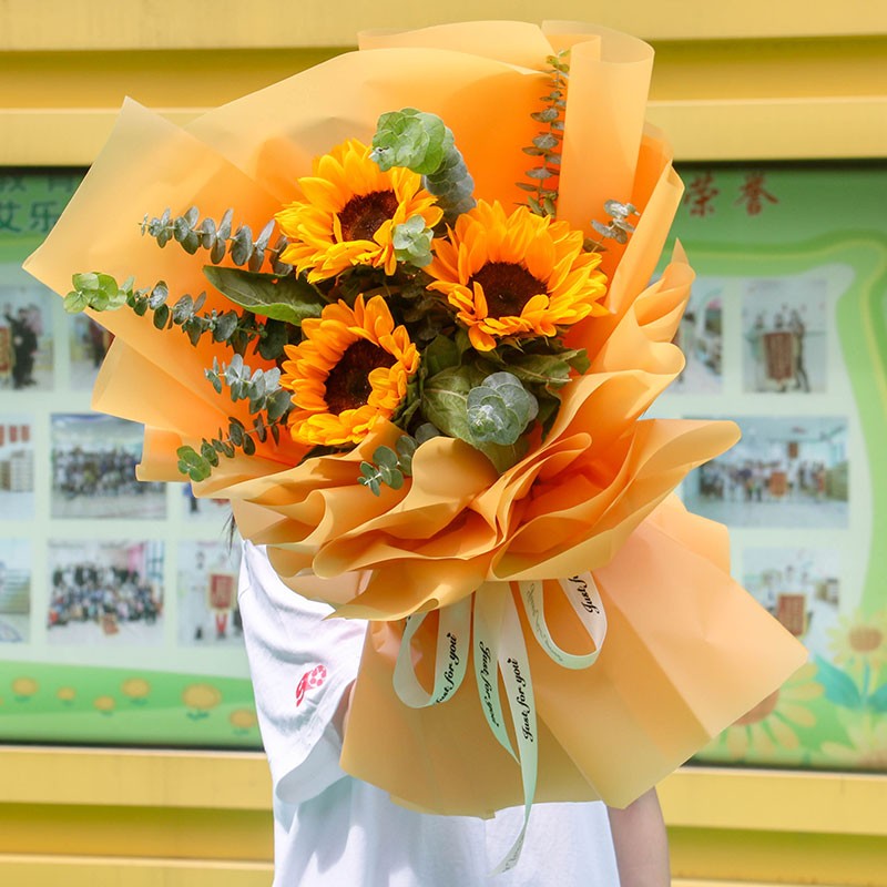 父爱如山-3朵向日葵。搭配尤加利叶间插