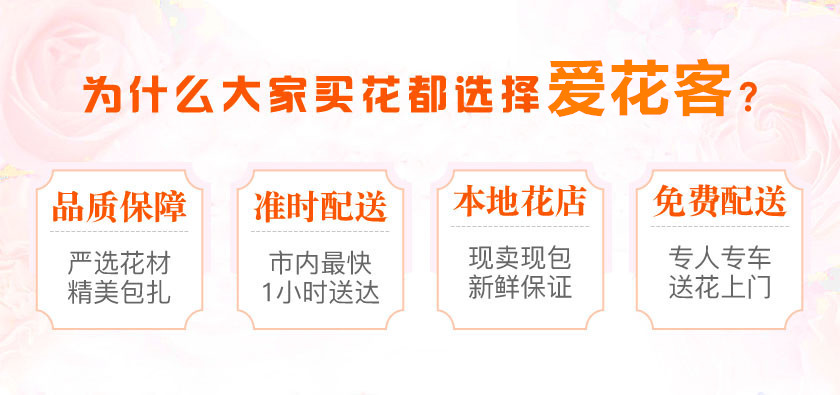 注意事项:鲜花属于生鲜类产品,非质量问题不接受无理由退换货 温馨提示:花束由花艺师手工包扎,图片仅限参考,请以实物为准