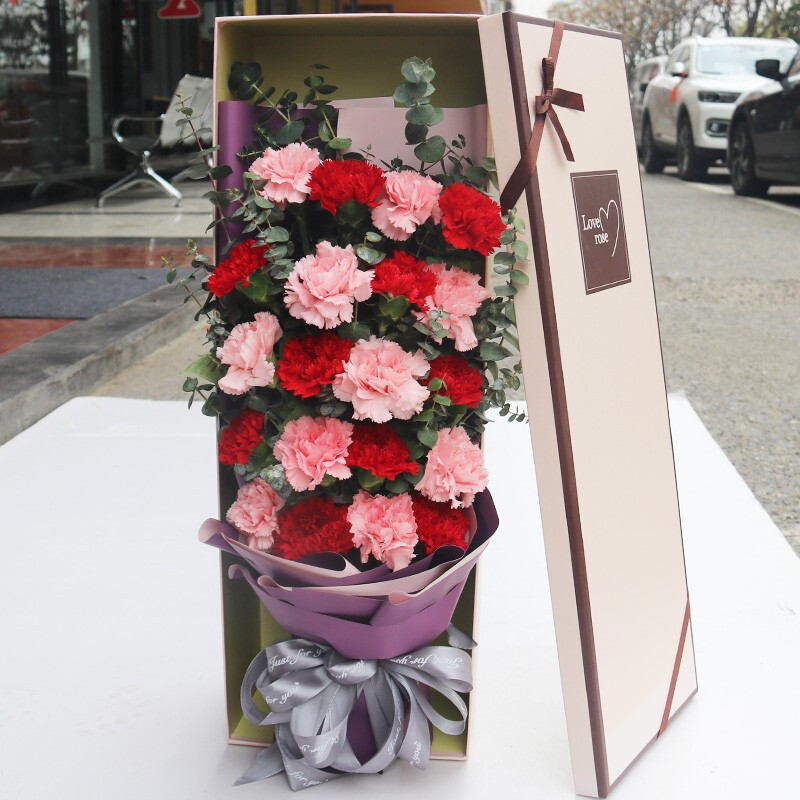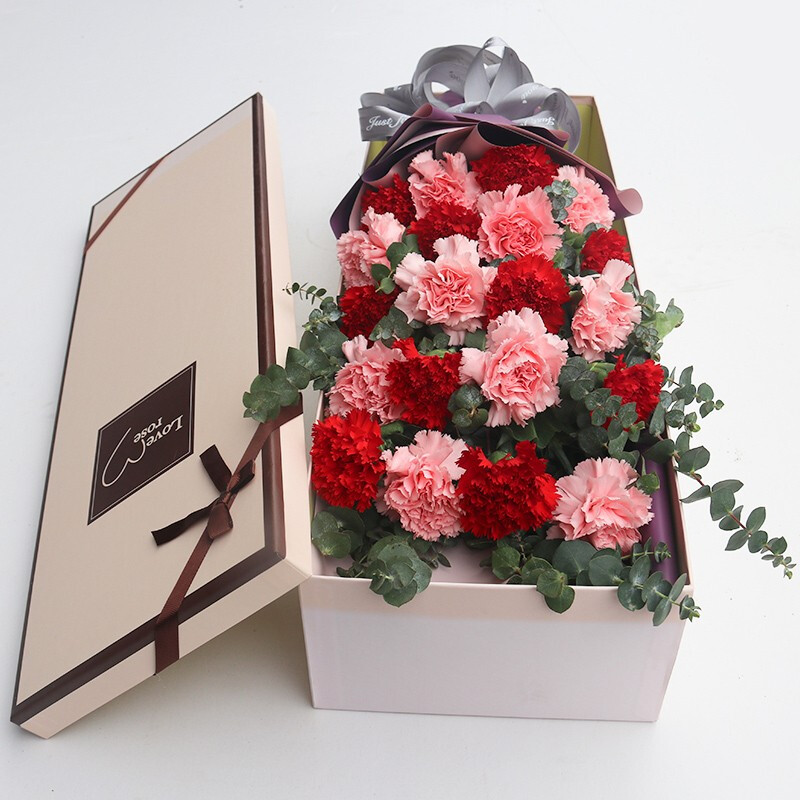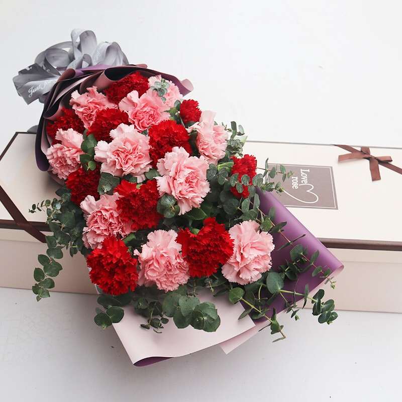 微风徐来-20朵康乃馨(10朵粉色,10朵红色),搭配尤加利叶