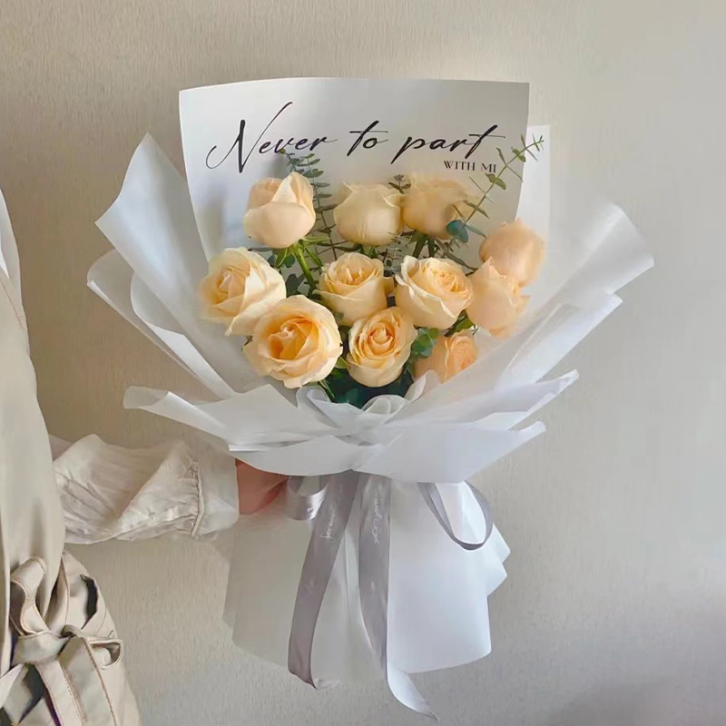 爱的怀抱-11朵香槟玫瑰,尤加利叶点缀搭配