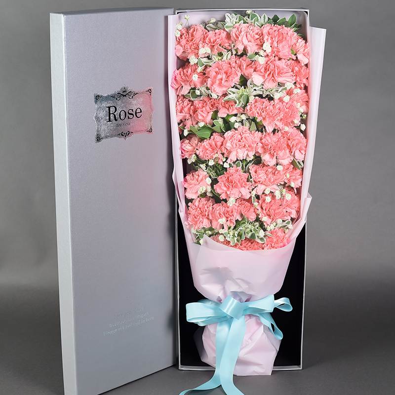 母爱至深-33朵粉色康乃馨,满天星、石竹梅点缀