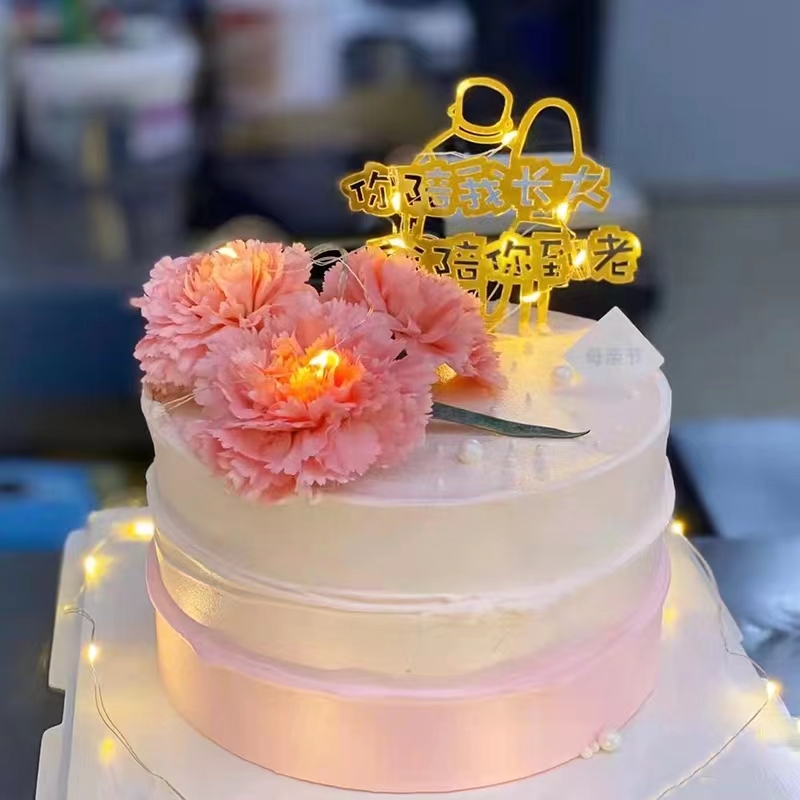 陪伴您妈妈-康乃馨发光带鲜花款蛋糕