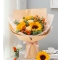 幸福花伴- 香槟玫瑰3枝、向日葵3枝、橙色多头玫瑰2枝、尤加利叶5枝