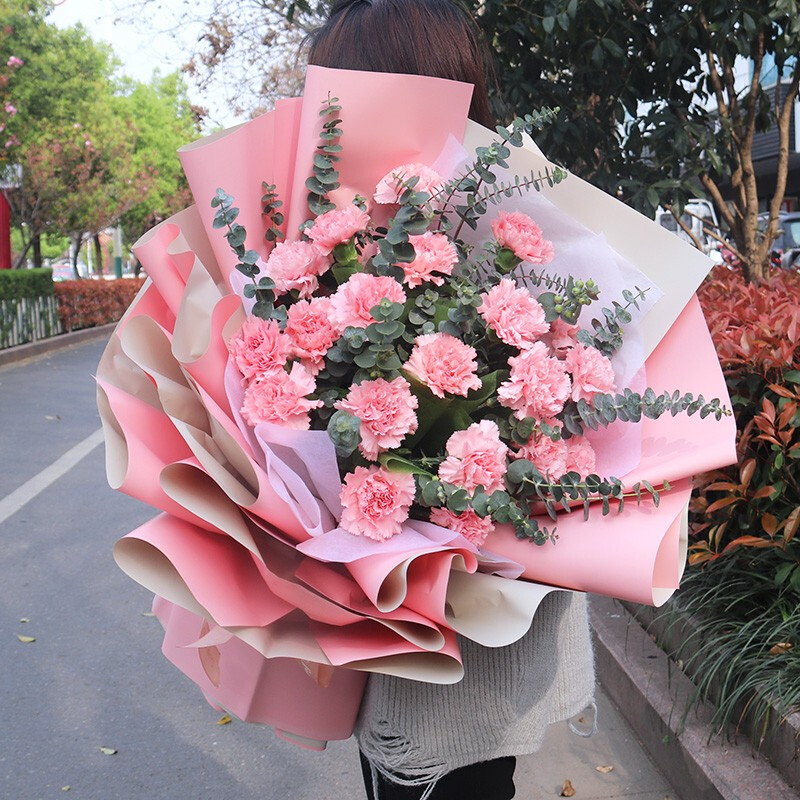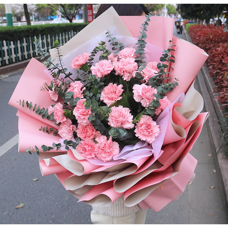 明亮的星星-19朵粉色康乃馨,搭配尤加利叶